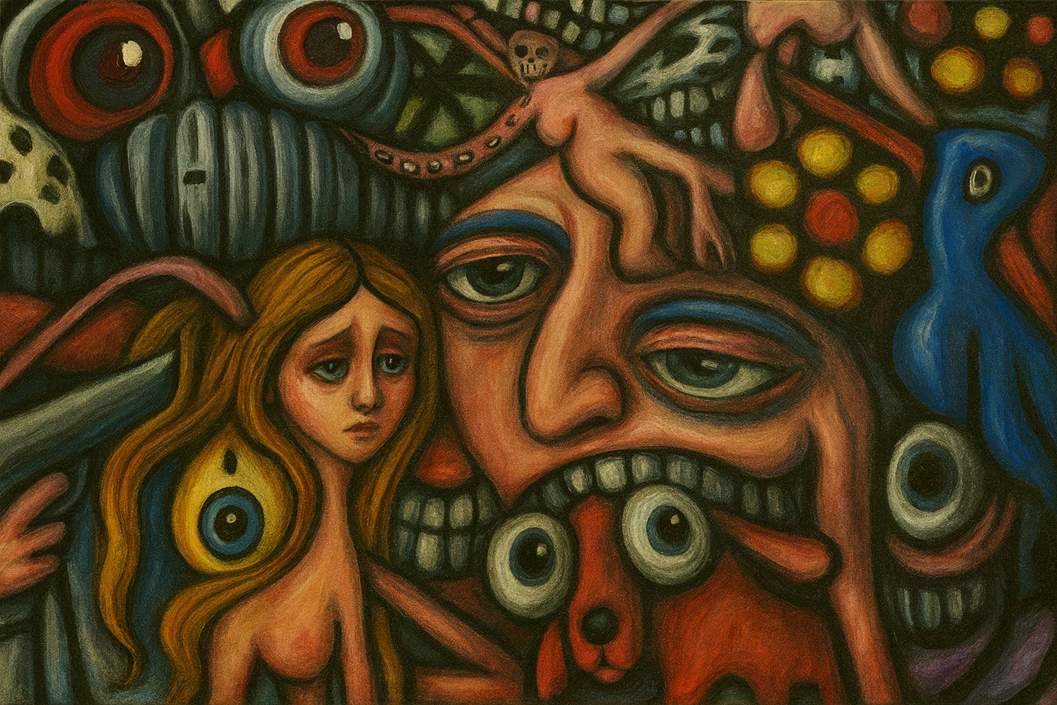 Melted Plastic is a contemporary artist whose work blends surrealism, symbolism, and raw human emotion into vivid, dreamlike imagery. Exploring themes of vulnerability, mortality, and the subconscious, his paintings often juxtapose innocence with distortion — evoking both discomfort and beauty in a single frame. With bold colors and haunting figures, Melted Plastic invites viewers into a world where inner struggles, desire, and fear are transformed into striking visual narratives.